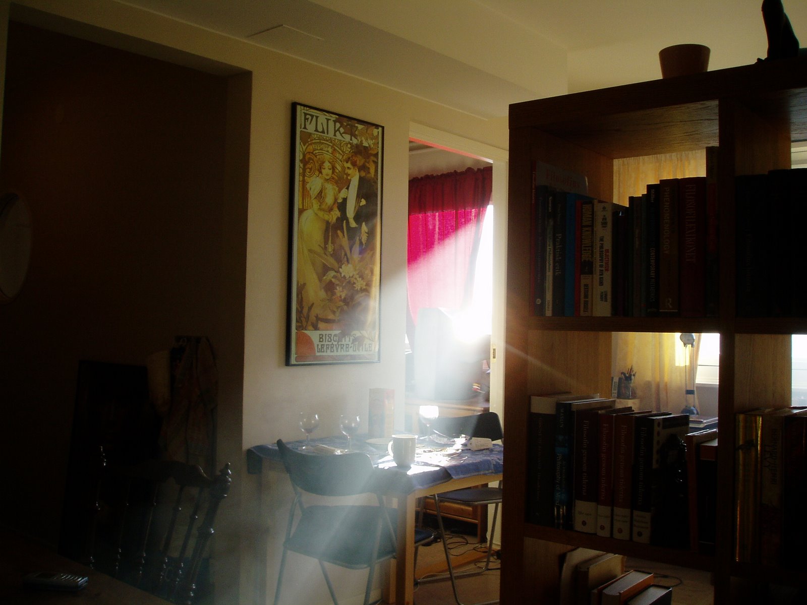 Det kom en sista maxi-lön, så det kan nog bli en bokhylla ändå. Det kanske behövs. Om inte annat kommer lägenheten kännas mer ombonad. Om jag har råd köper jag gardiner i Uddevalla. De jag kollade in i somras – om de finns kvar. Annars finns säkert något annat fint.