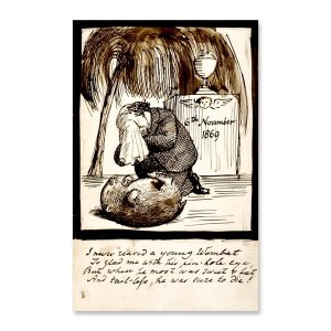 När Rossettis hustru Elizabeth Siddal gick bort (hon tog en överdos laudanum efter att ha fått missfall) föll han i depression och utvecklade ett slags besatthet av exotiska djur i allmänhet, och wombaten i synnerhet. Han tillbringade timmar vid ”Wombats lair” på London Zoo och tvingade sina bekanta att möta honom där. Så småningom skaffade hans sig också husdjurswombats (som dock inte blev allt för långlivade i det engelska klimatet). I ett brev till brodern skrev han att ”The Wombat is a Joy, a Triumph, a Delight, a Madness!” vid den första wombatens ankomst.