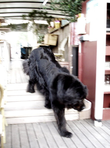 I Maraiskvarteren hittar vi falafelstället som har den godaste falafel vi någonsin smakat. Vi köper med oss varsin och slår oss ned i en närliggande liten park. När vi sedan promenerar över Ile de la Cité ser vi båten med baren där vi en gång satt för drygt ett år sedan. Vi går ner dit och dricker kaffe och kir. Till vår (mest min) stora glädje har de kvar hunden, stor som en liten ponny, som går runt på båten eller slumrar vid landgången. Innan vi går hem stannar vi till vid Shakespeare & Co. dock utan att inhandla något. På Monoprix får dock matematikern äntligen sin champagne.